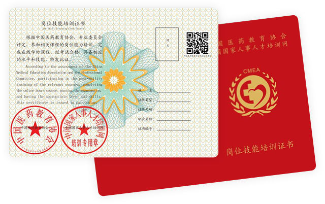 颁证岗位能力培训证书由中国医药教育协会和人力资源和社会保障部同时认证,含金量高,内容丰富,用途广泛