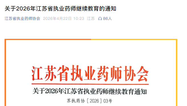 | 11 | 江苏 | 报名时间:2026年4月28日至12月15日;学习时间:2026年4月28日至12月31日 | 免费 | 江苏省执业药师协会 |