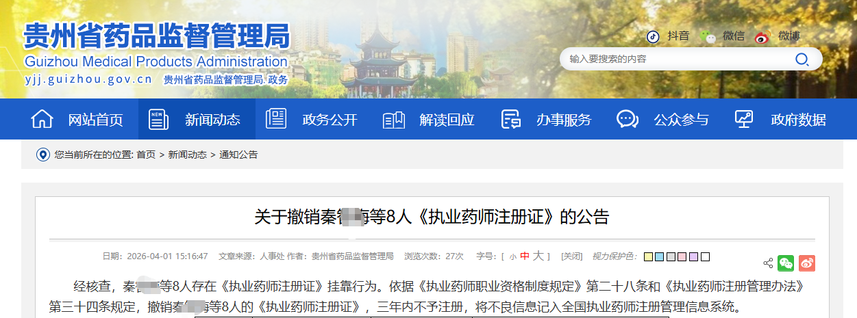 贵州:8名执业药师挂证